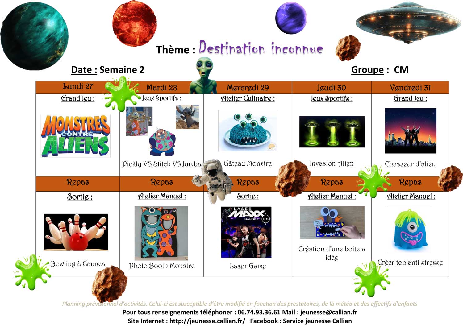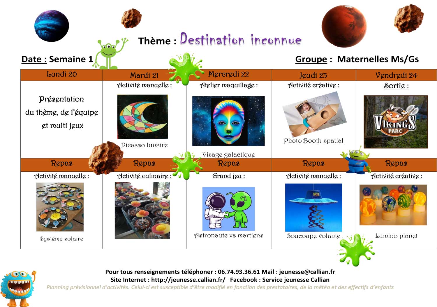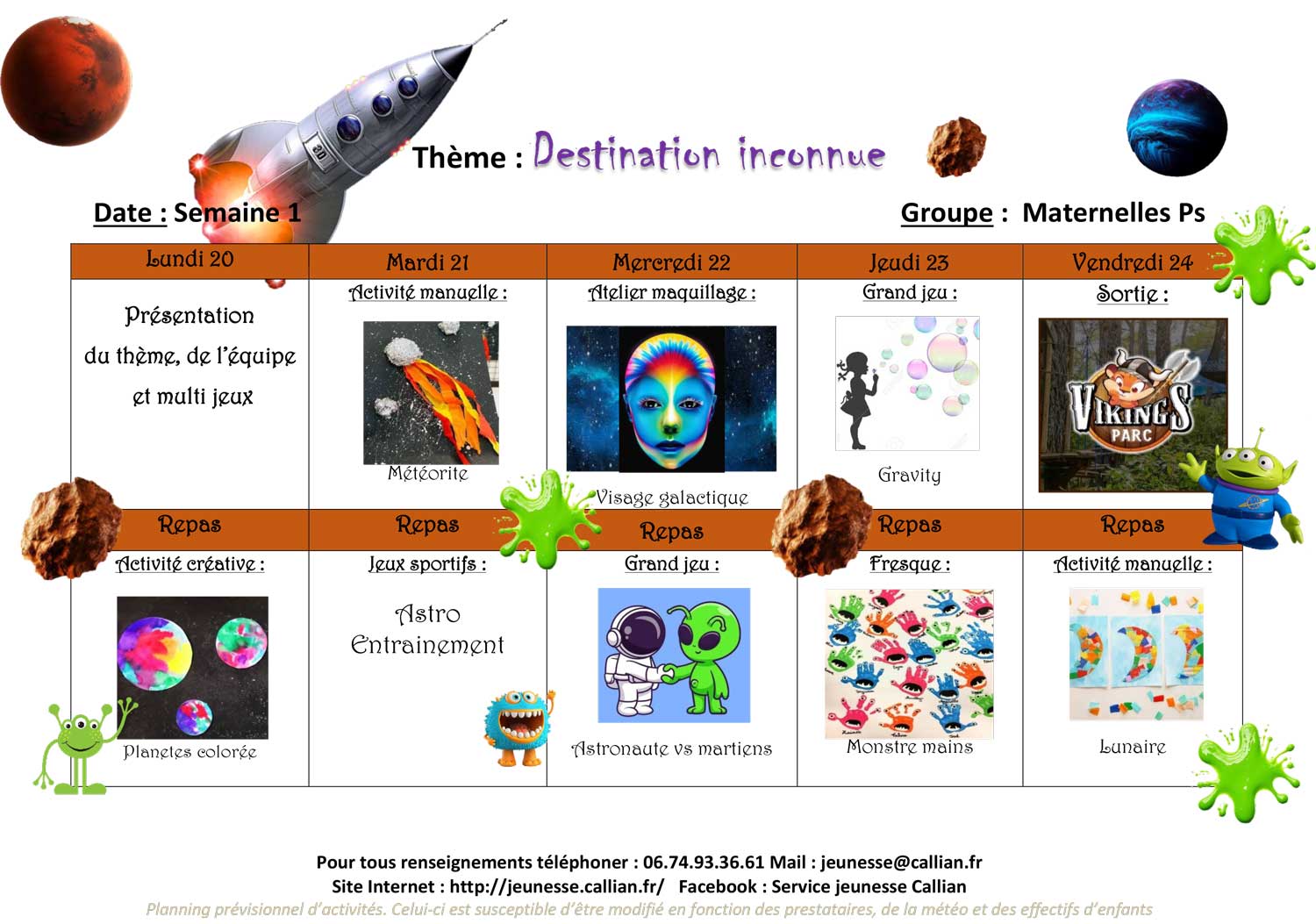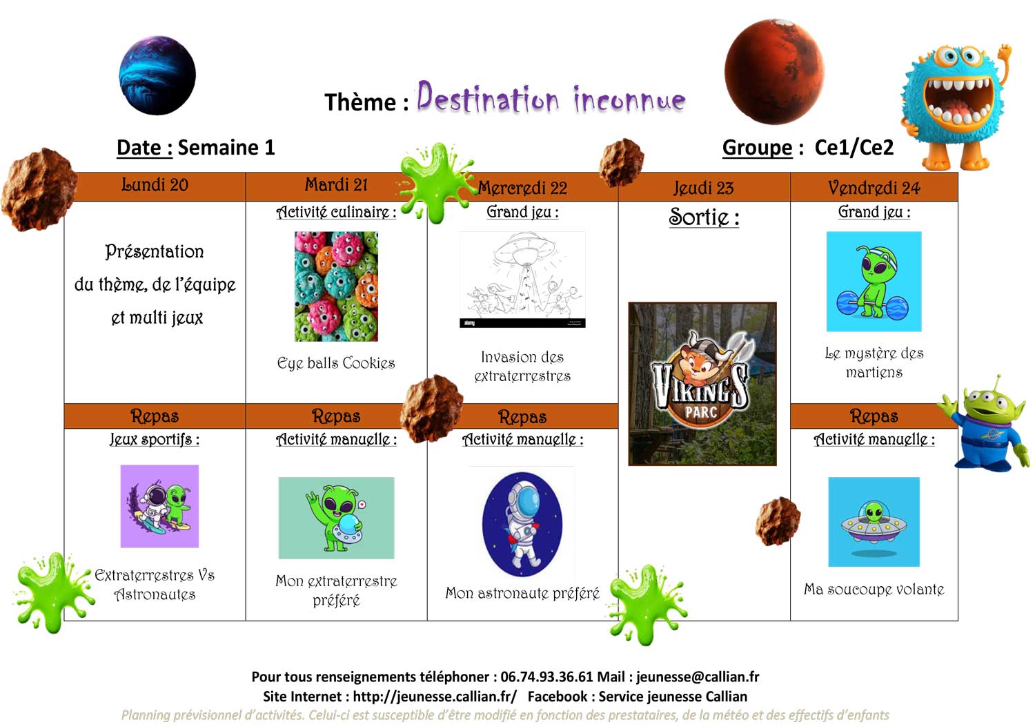 Planning de l’accueil de Loisirs des Vacances 2025