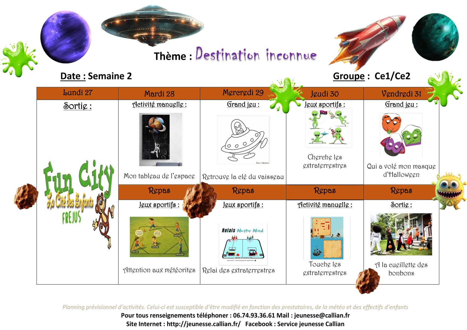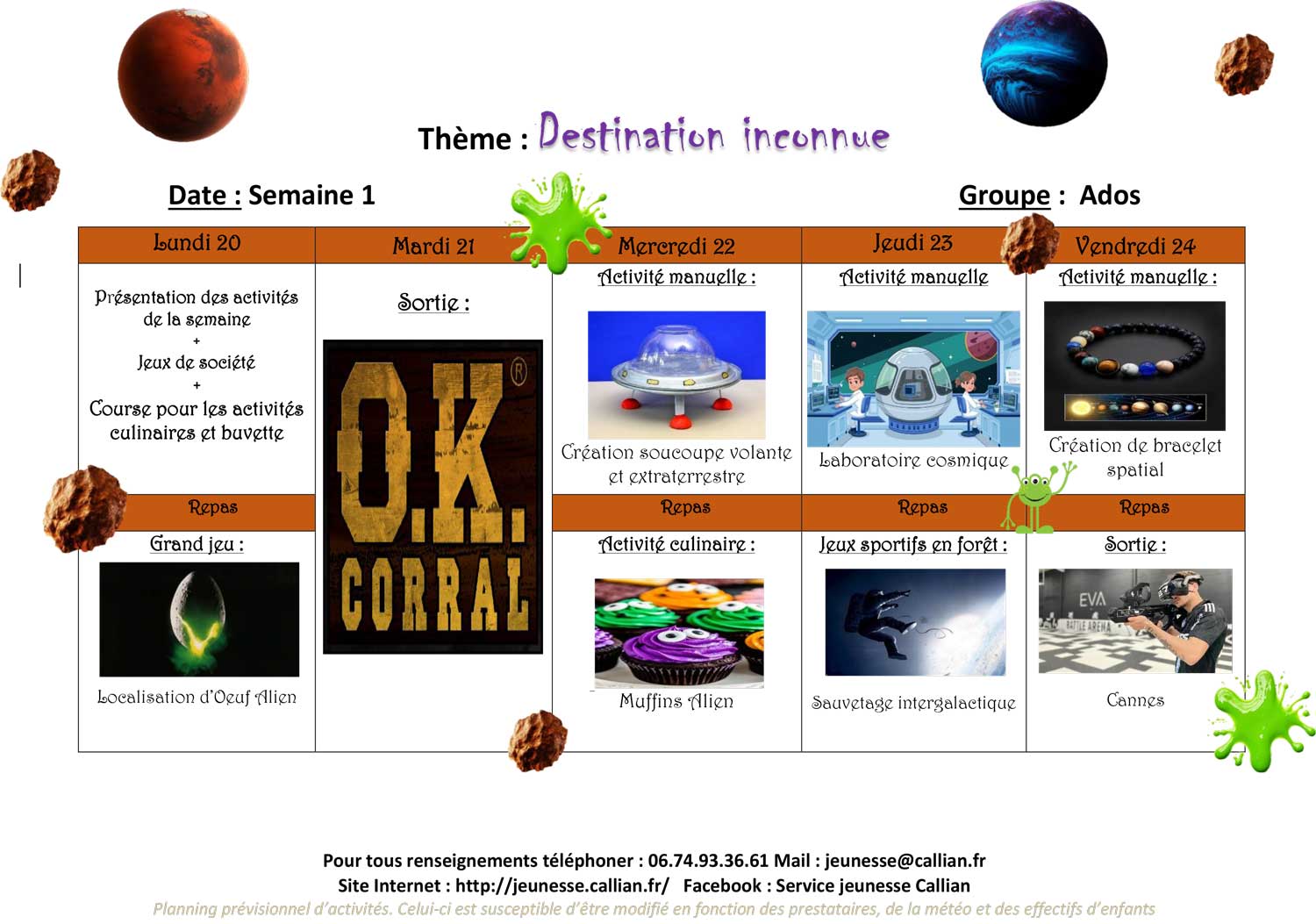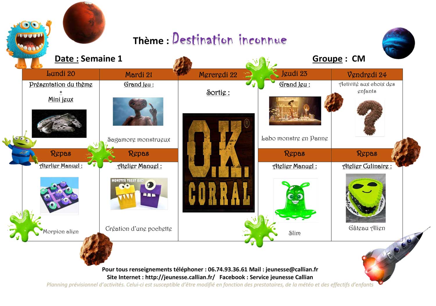 Planning de l’accueil de Loisirs des Vacances 2025