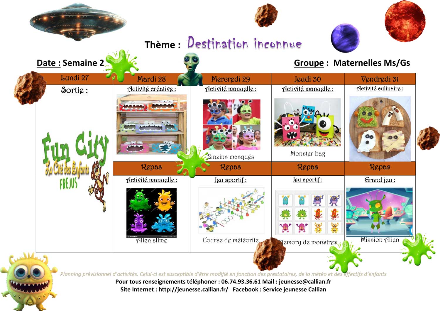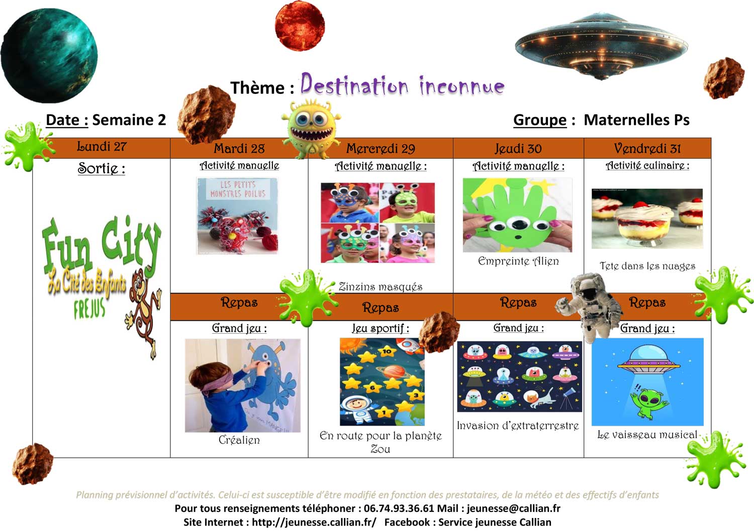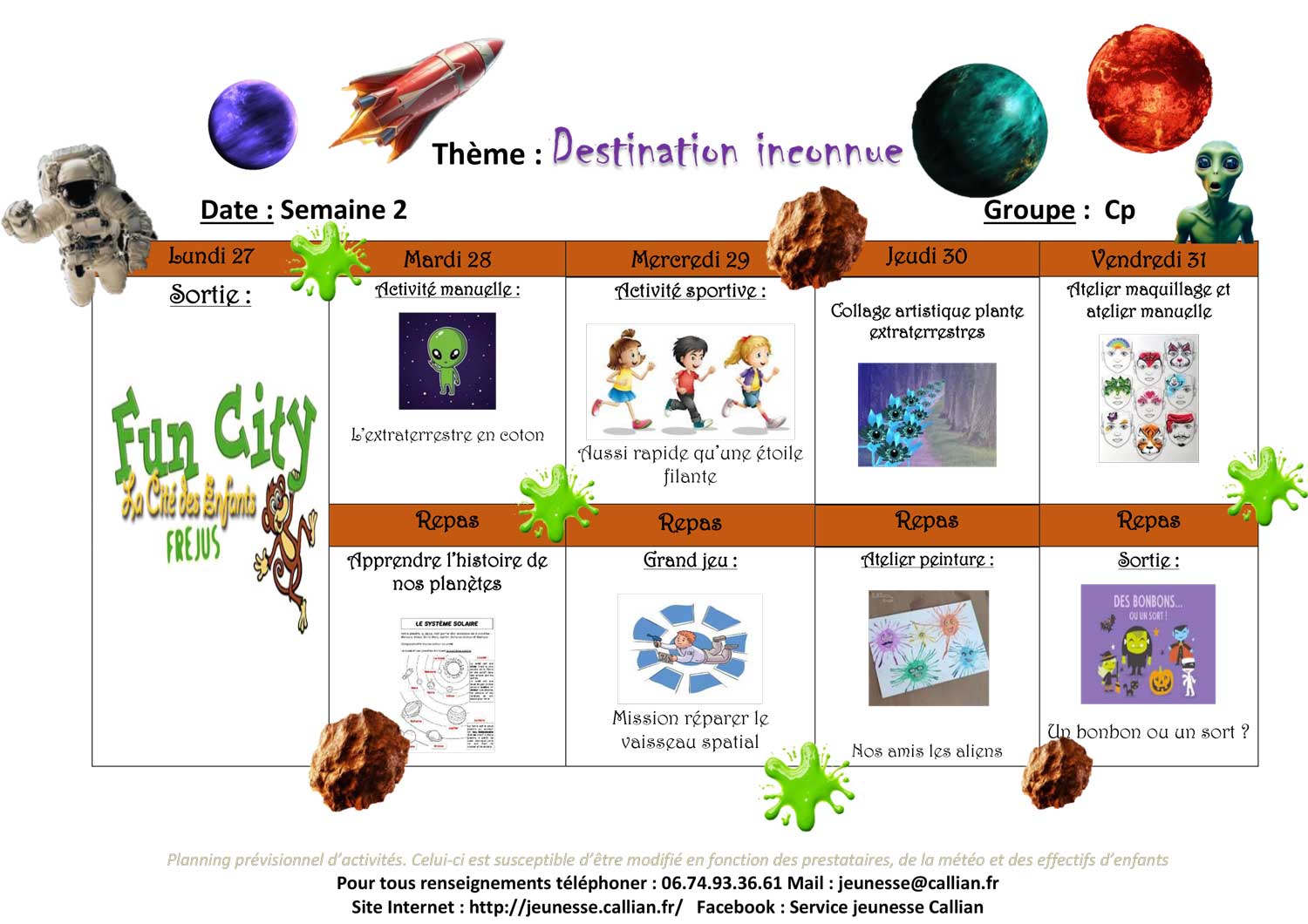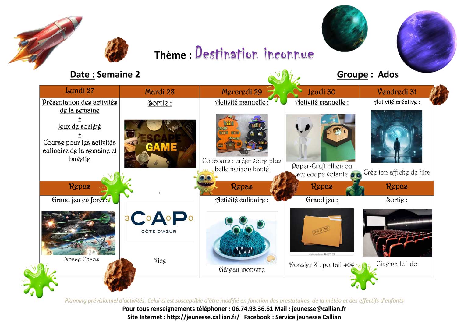 Planning de l’accueil de Loisirs des Vacances 2025
